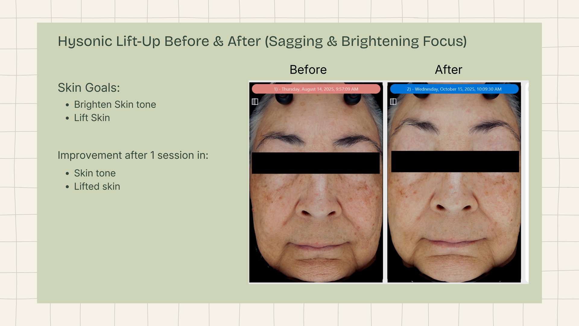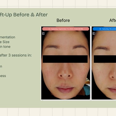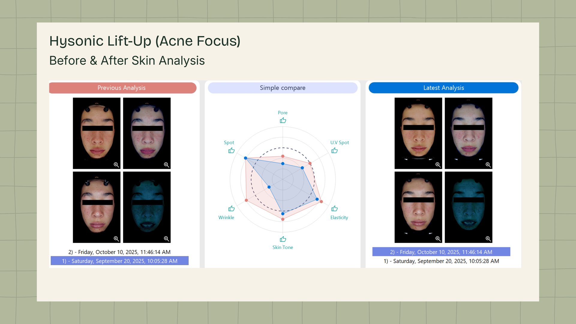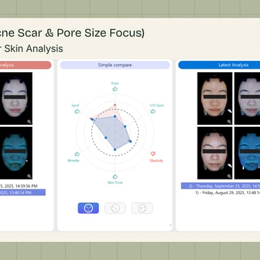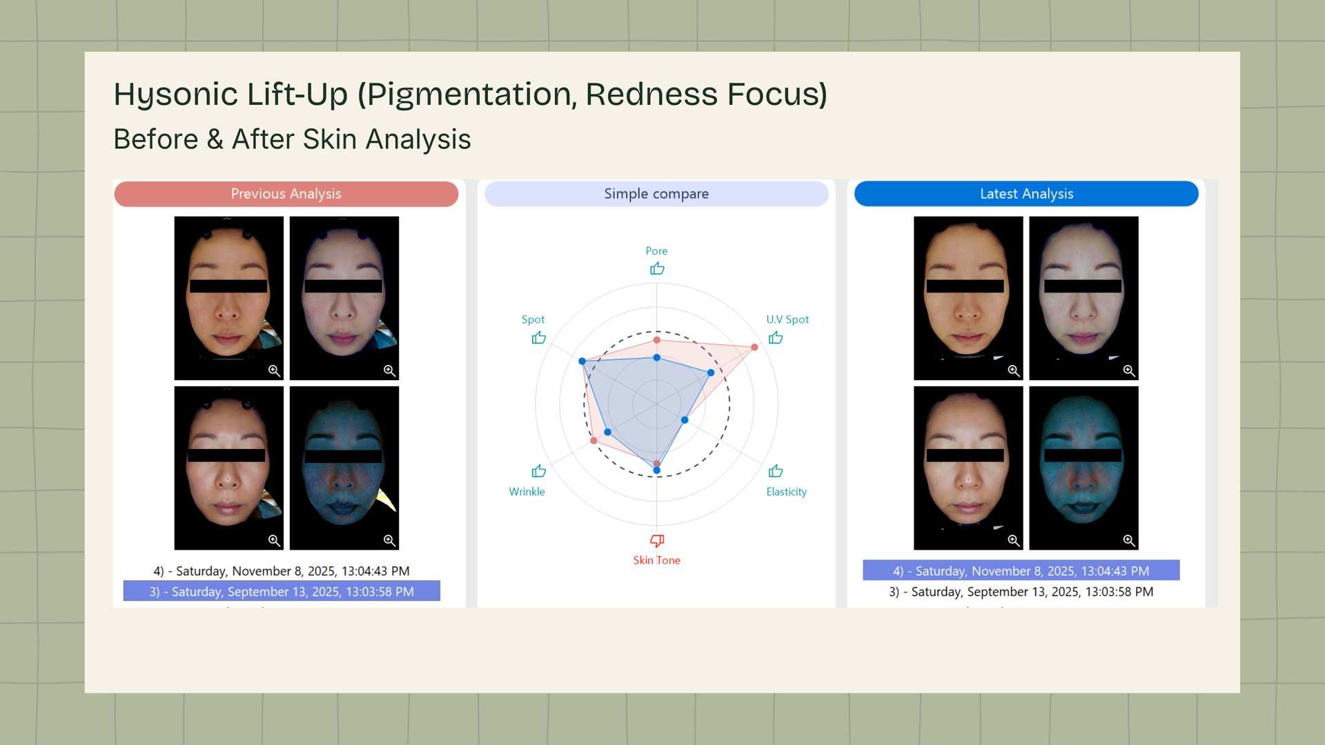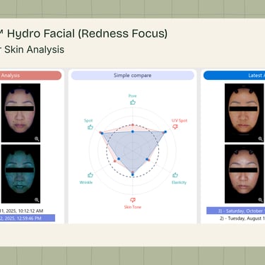 Every client’s skin journey is unique. Results vary based on skin condition, lifestyle, and consistency of care, which is why we use skin analysis as a supportive tool to guide customization and track progress.